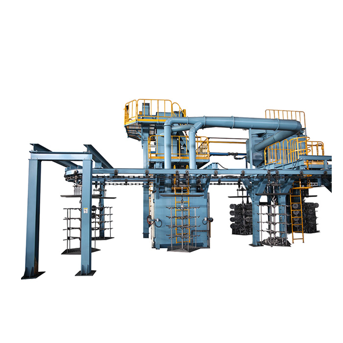 Оборудование для дробеструйной обработки Q383/Q483 представляет собой автоматическую металлообрабатывающую установку непрерывного действия с цепным транспортером, которая обычно задействуется для очистки конструкций сложных форм и массой до 1000 кг или даже более, изготовленных в малых или средних партиях. Это могут быть отливки, сварные конструкции, кованые или прессованные детали.