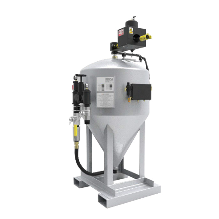Пескоструйный аппарат DB3000 относится к беспыльному пескоструйному оборудованию, так как в технологическом процессе, в смесь, добавляется вод, связывающая смесь и препятствующая образованию пыли.