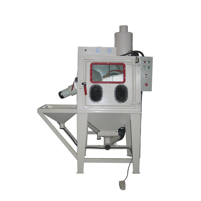 Оператор полностью защищен от взрывной среды, взаимодействуя снаружи с продуктом, находящимся внутри рабочей камеры, через герметичные прочные рабочие перчатки. Никакие частицы пыли или переносимые по воздуху загрязняющие вещества не выходят из камеры дробеструйной очистки, поэтому камера не представляет опасности для рабочей среды или персонала, выполняющего дробеструйную обработку.